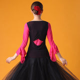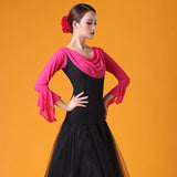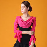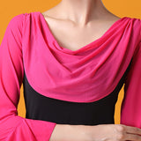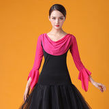 You'll have an extraordinary sparkle under the spotlight with this flattering ballroom top. This patchwork top features a boat neck, long sleeve. Made from milk silk.
