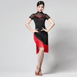 Heat up the stage with this modern latin dress. This knee-length dress features a crew neck, short sleeve. Made from polyester.