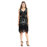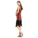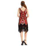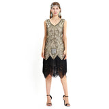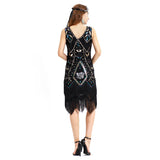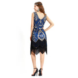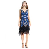 We are huge fans of this luxe 1920s dress. This calf-length dress features a scoop neck, sleeveless. Made from polyester.