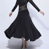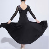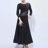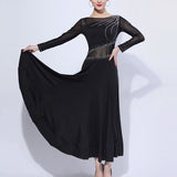 We are huge fans of this elegant ballroom dress. This dress features a boat neck, long sleeve. Made from polyester.