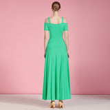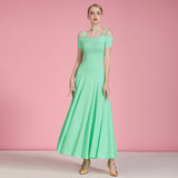 Spark the stage like a streak of lightning in this pretty ballroom dress. This long dress features a square neck, short sleeve. Made from ice silk.