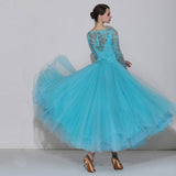 Your dancing closet is just begging to this stunning ballroom dress. This long dress features a round neck, long sleeve. Made from spandex.