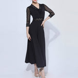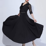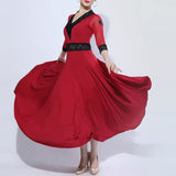 Take the stage in style in this elegant ballroom dress. This dress features a v neck, 3/4 length sleeve. Made from polyester.