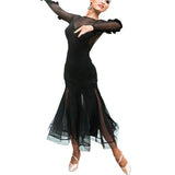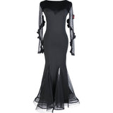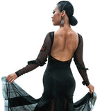 Take the stage in style in this elegant ballroom dress. This long dress features a boat neck, long sleeve. Made from milk silk.