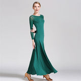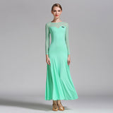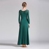 You'll look like a gem in this romantic ballroom dress. This maxi dress features a boat neck, long sleeve. Made from milk silk.