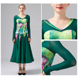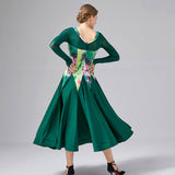 Heat up the stage with this glamorous ballroom dress. This long dress features a v neck, long sleeve. Made from milk silk.