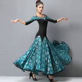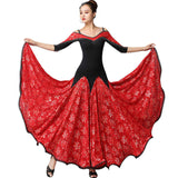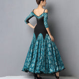 Your dancing closet is just begging to this dramatic ballroom dress. This long dress features a off shoulder, half sleeve. Made from milk silk.