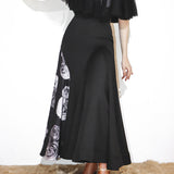 Add dimension and edginess to your outfit with this stylish ballroom skirt. This long skirt features a high waist, abstract print pattern. Made from polyester.