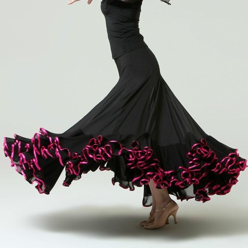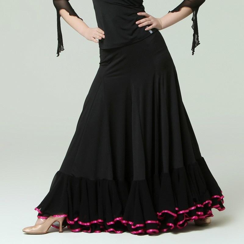 Draped Maxi Ballroom Skirt with Trimming