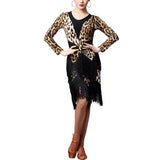Sparkle and glow in this glamorous latin dress. This knee-length dress features a round neck, long sleeve. Made from milk silk.