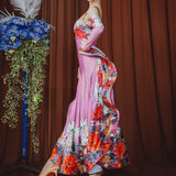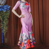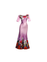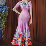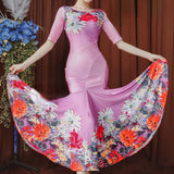 Win over any room in this pretty ballroom dress. This long dress features a boat neck, 3/4 length sleeve. Made from polyester.