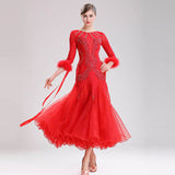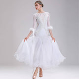 We are huge fans of this glamorous ballroom dress. This long dress features a crew neck, 3/4 length sleeve. Made from milk silk.