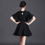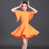 Shimmer and glow in this simple latin dress. This knee-length dress features a crew neck, half sleeve. Made from nylon.