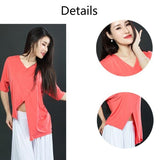 Give dimension to your body and your moves in this relaxed contemporary top. This solid color top features a v neck, half sleeve. Made from modal fabric.