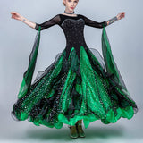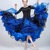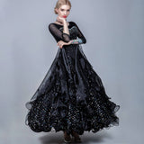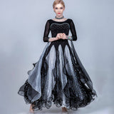 Shine with the glitz and glamour of Broadway in this flattering ballroom dress. This long dress features a crew neck, 3/4 length sleeve. Made from milk silk.