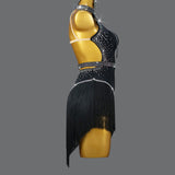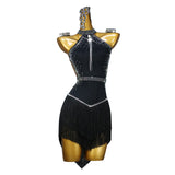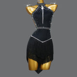 Spark the stage like a streak of lightning in this modern Latin dress. This short dress features a high neck, Sleeveless. Made from polyester.