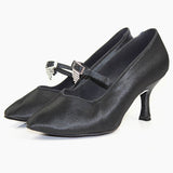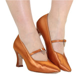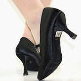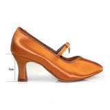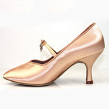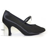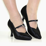 Glow under the stage lights with these stunning ballroom shoes. These 2.8" Cuban shoes feature a closed toe buckle fastening, solid color pattern. Made from satin.