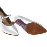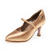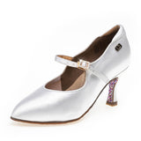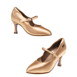 You'll look like a jewel in these romantic ballroom shoes. These 3" cuban shoes features a closed toe buckle fastening, solid color pattern. Made from satin.