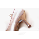 It is about time for you to embrace fun dancewear fashion and treat yourself to these luxe ballroom shoes. These 2.1" shoes feature a closed toe buckle fastening, pattern. Made from satin.