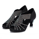 It is about time for you to embrace fun dancewear fashion and treat yourself to these striking latin/ballroom shoes. These 2.3" Luigi XV shoes feature a peep toe open toe, jeweled pattern. Made from satin.