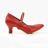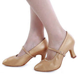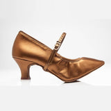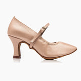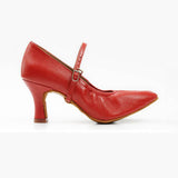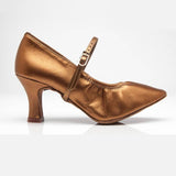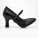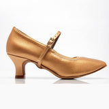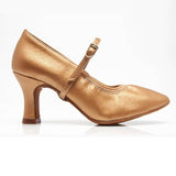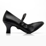 Shine with the glitz and glamour of Broadway in these classic ballroom shoes. These 2.1" flared shoes feature a closed toe buckle fastening, solid color pattern. Made from faux leather.