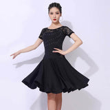 Heat up the stage with this modern latin dress. This knee-length dress features a crew neck, short sleeve. Made from polyester.