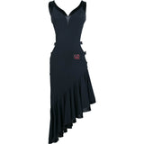 Win over any room in this edgy latin dress. This calf-length dress features a v neck, sleeveless. Made from lycra.
