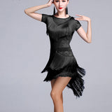 Take the stage in style in this elegant latin dress. This knee-length dress features a crew neck, short sleeve. Made from milk silk.