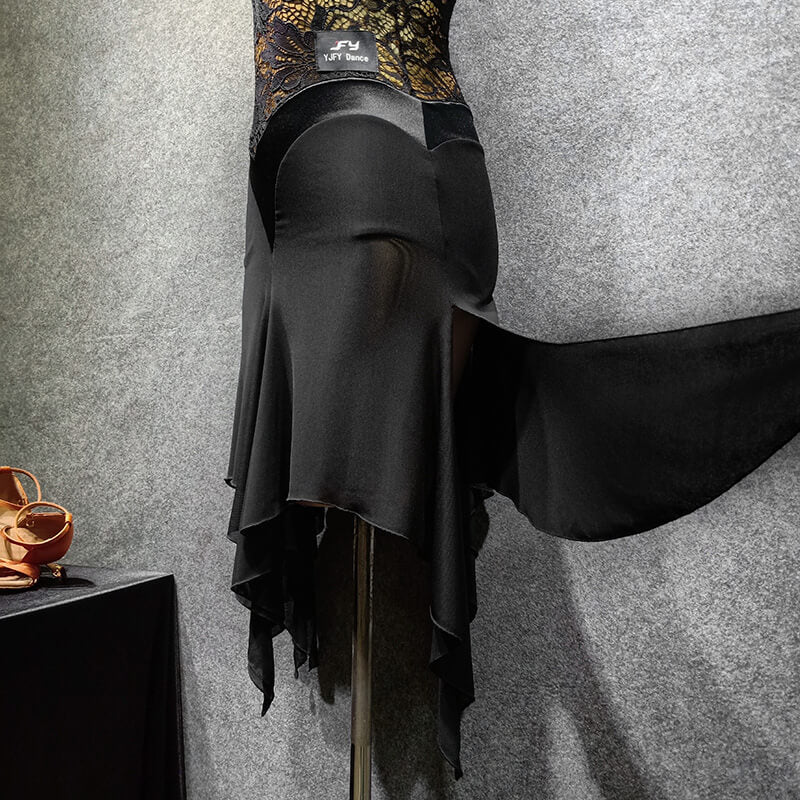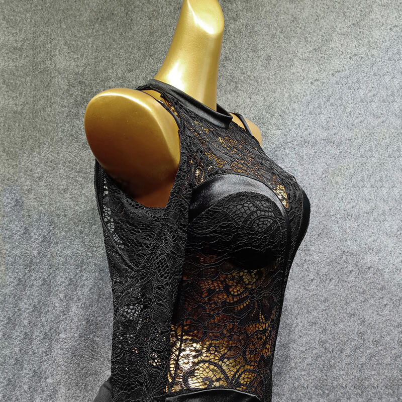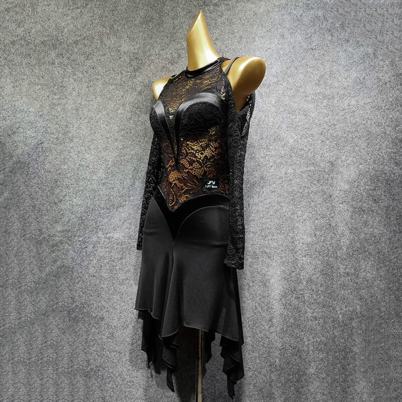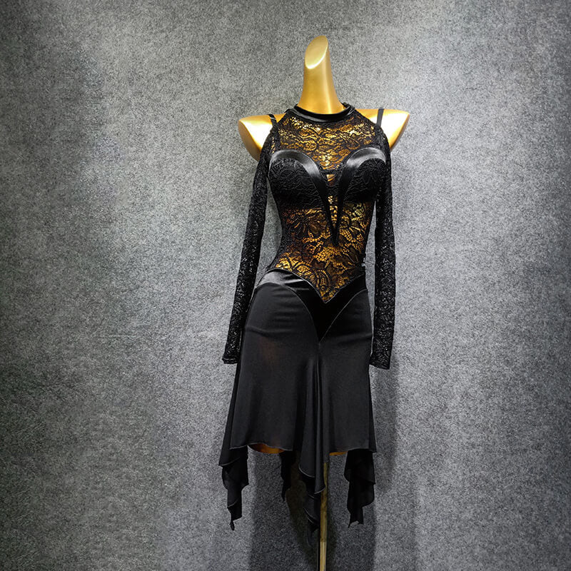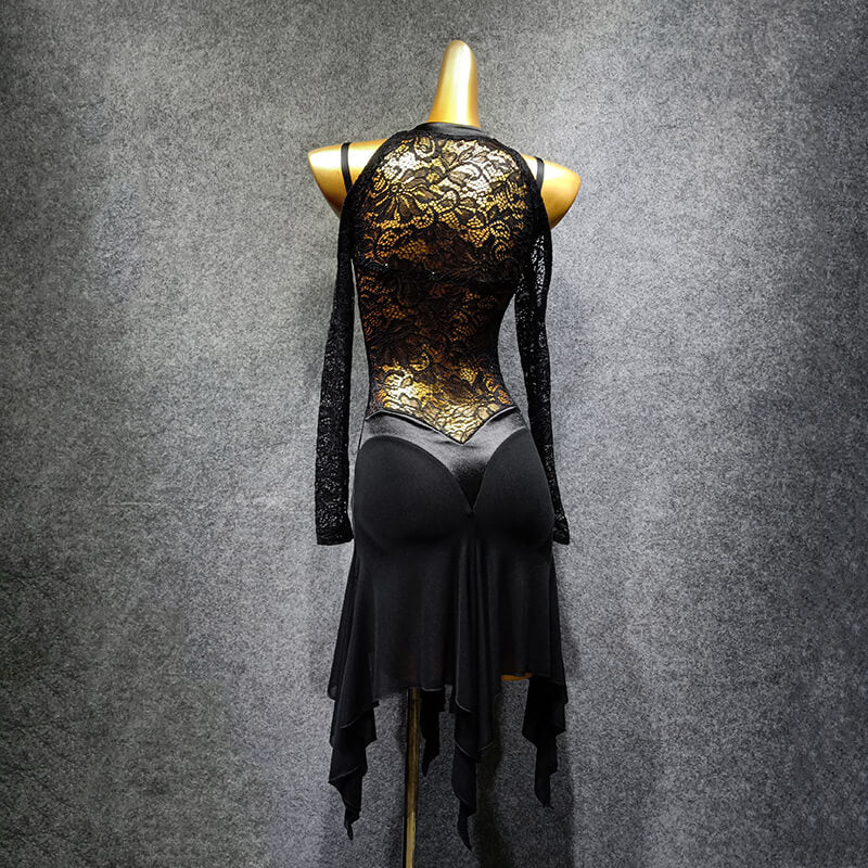 Sparkle and glow in this flirty Latin dress. This knee-length dress features a crew neck, long sleeve. Made from the mesh.