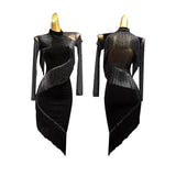 Heat up the stage with this feminine Latin dress. This knee-length dress features a round neck, long sleeve. Made from velvet.