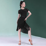 Add dimension and edginess to your outfit with this classic latin dress. This knee-length dress features a crew neck, short sleeve. Made from nylon.