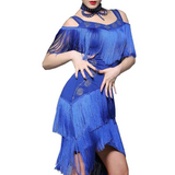 You're not crazy for wanting to wear this edgy latin dress. This short dress features a halter strap, tassel sleeve. Made from microfiber.