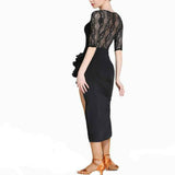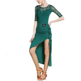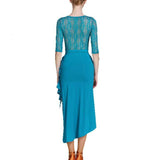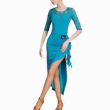 Heat up the stage with this chic latin dress. This calf-length dress features a round neck, 3/4 length sleeve. Made from polyester.