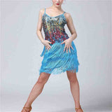 You'll have an extraordinary sparkle under the spotlight with this modern latin dress. This mini dress features a spaghetti strap, sleeveless. Made from polyester.
