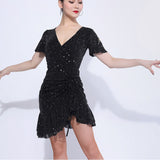You'll look like a gem in this elegant latin dress. This knee-length dress features a v neck. Made from polyester.