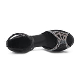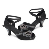 Win over any room in these chic latin shoes. These spool shoes features a open toe cross straps, jewelled pattern. Made from leather/pu.