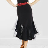 Bring about a memorable performance look with this sparkly latin skirt. This short skirt features a high waist, solid color pattern. Made from milk silk.
