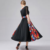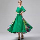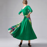 Sparkle and glow in this feminine ballroom dress. This long dress features an asymmetric, half sleeve. Made from ice silk.