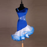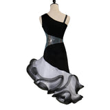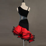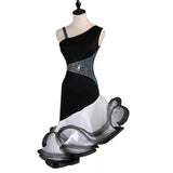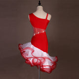 Asymmetric Knee-Length Latin Dress with Rhinestones