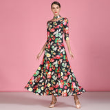 Shimmer and glow in this colorful ballroom dress. This long dress features a boat neck, half sleeve. Made from milk silk.
