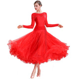 You'll have an extraordinary sparkle under the spotlight with this romantic ballroom dress. This maxi dress features a boat neck, long sleeve. Made from microfiber.