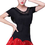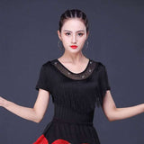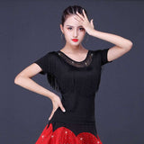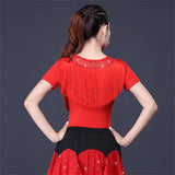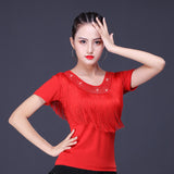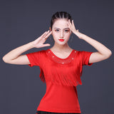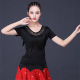 Your dancing closet is just begging to this chic latin/ballroom top. This solid color top features a round neck, short sleeve. Made from microfiber.