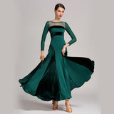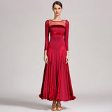 Create a memorable performance look with this elegant ballroom dress. This maxi dress features a boat neck, sheer sleeve. Made from pleuche.