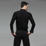 You'll look like a gem in this classic latin shirt. This solid color shirt features a shirt collar, long sleeve. Made from cotton blend.