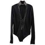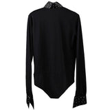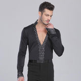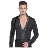 Give dimension to your body and your moves in this classic latin shirt. This polka dot shirt features a v neck, long sleeve. Made from spandex.
