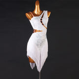 Heat up the stage with this chic latin dress. This knee-length dress features a asymmetric, sleeveless. Made from nylon.