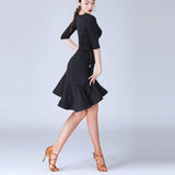 Fire up the stage with this flattering latin dress. This knee-length dress features a asymmetric, half sleeve. Made from nylon.