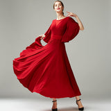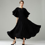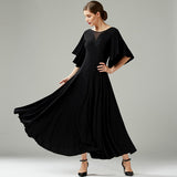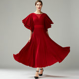 It is about time for you to embrace fun dancewear fashion and treat yourself to this chic ballroom dress. This long dress features a crew neck, flounce sleeve. Made from nylon.
