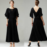 Crew Neck Flounce Sleeve Ballroom Dress with Flower Belt
