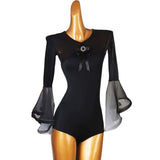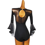 You'll have an extraordinary sparkle under the spotlight with this chic latin/ballroom leotard. This solid color leotard features a crew neck, long sleeve. Made from nylon.